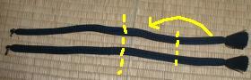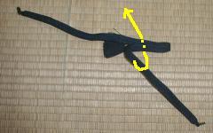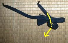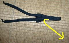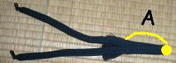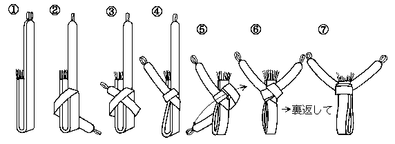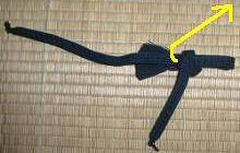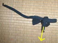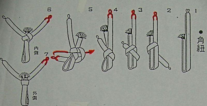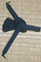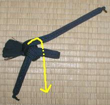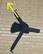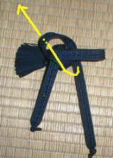 Take the second himo, do the same as above but have the pompom end go to the right.